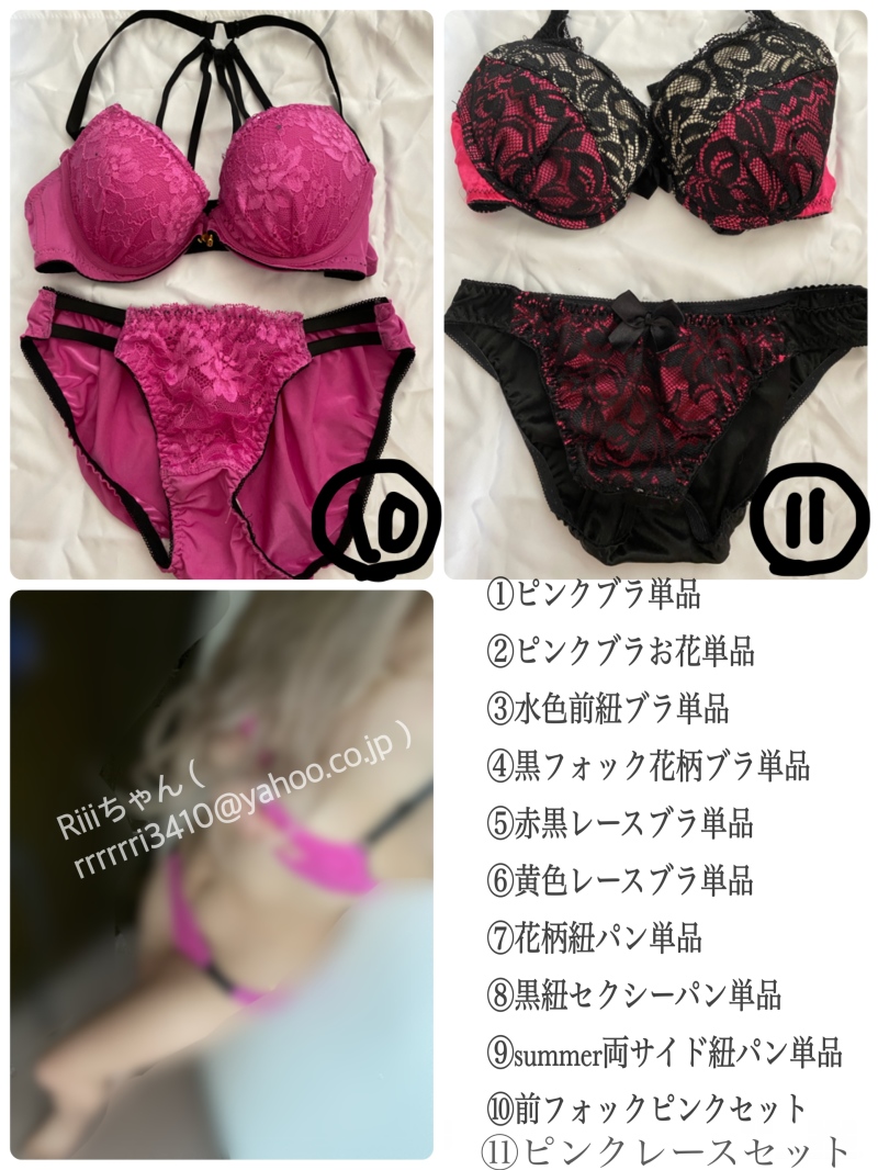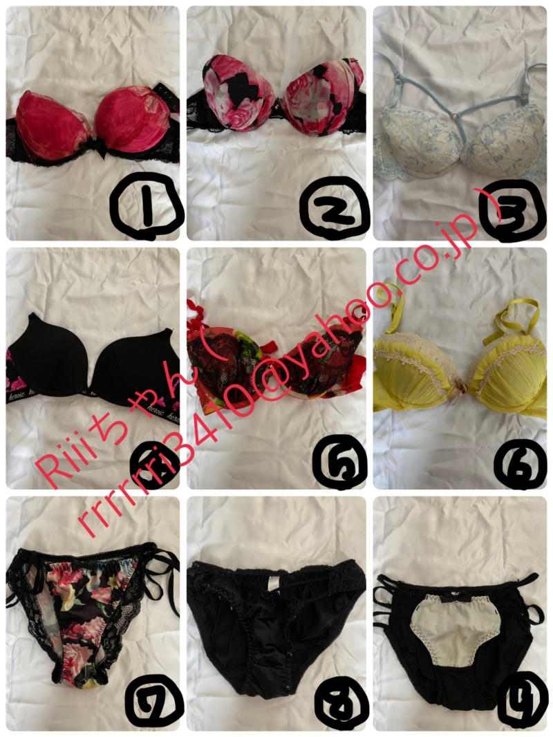 Riiiちゃんさん(20歳) 茨城県 取引方法 (郵送) 下着売ります(◍˃ᵕ˂◍)丁度服の生理してたら要らない下着がバラバラで出てきたので誰か買い取ってください🎶詳しい内容はメールにて☻・上下セット\5.000・ブラジャー\1000・パンツ\1500❤ブラ&パンツ11バラセット❤\15.000ー買うならバラセットをオススメします♡お値段の方も安くなってます(≧◡≦)詳しいことはメールでお願いします🎶ー注意事項ー・先お支払い確認出来ましたら発送致します