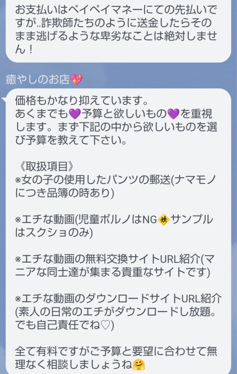 ともなさん(24歳) 関東 取引方法 (手渡し) パンツや動画欲しい方いつでも連絡してください。パンツは4枚送料込み8000円動画は1本につき800円会う、TEL、えん、全てNG。アカウントもあるのでラインください。公式のアカウントです!IDは@298lldmiよろしくおねがいします。